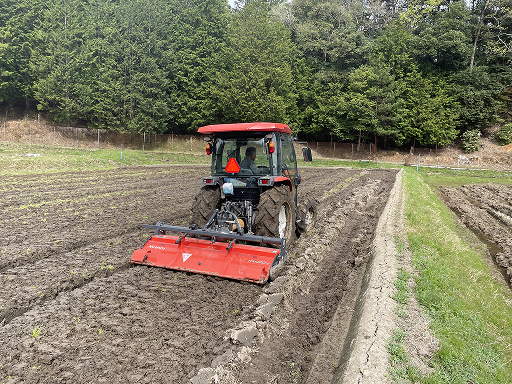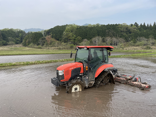 田んぼの土を耕して柔らかくし、稲作に適した状態に整える作業をします。