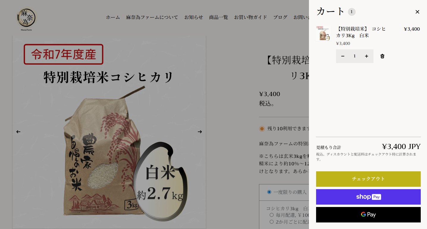 麻奈為ファーム公式オンラインショップをご利用いただきまして、ありがとうございます。